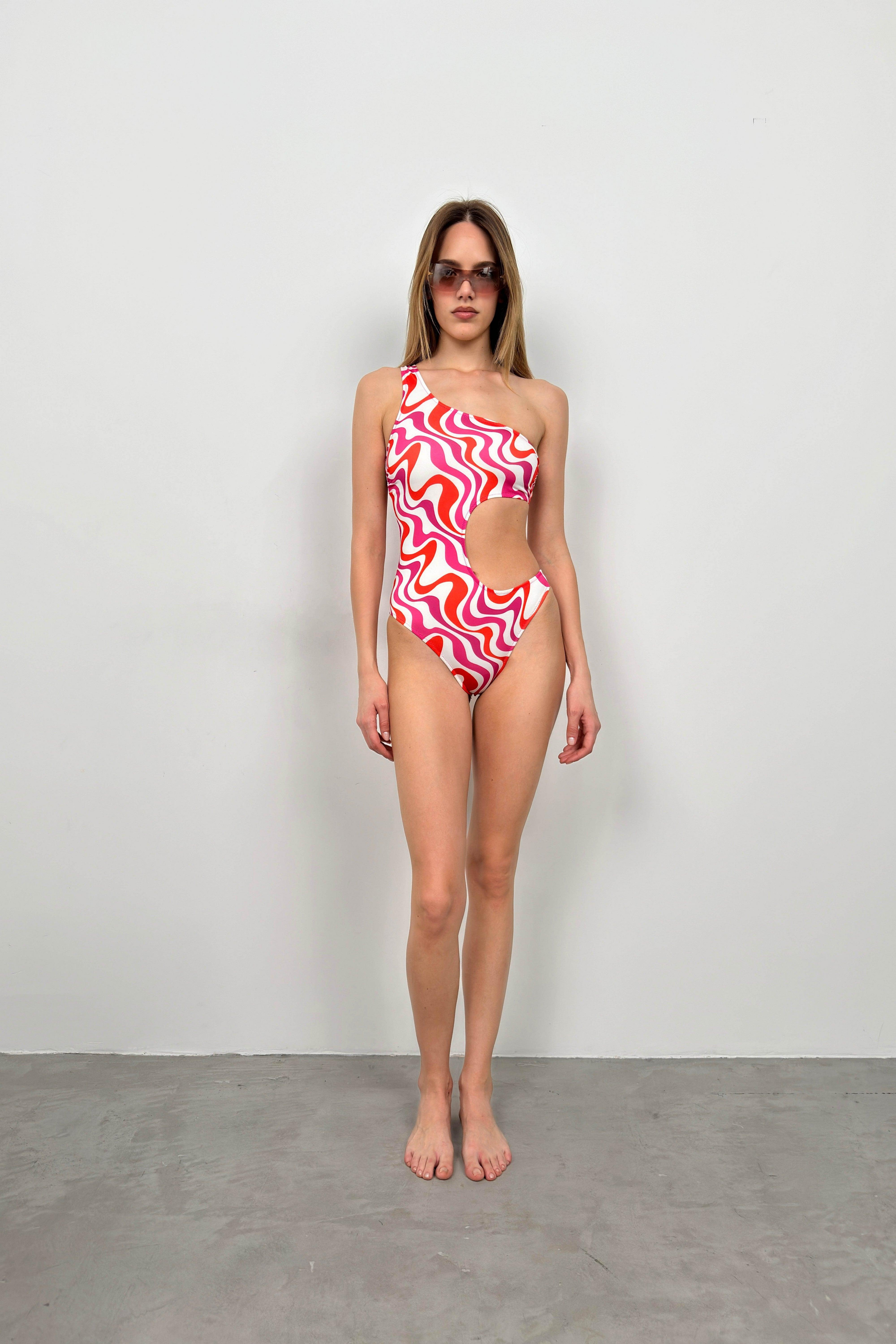 Tek Omuz Desenli Pembe Mayokini