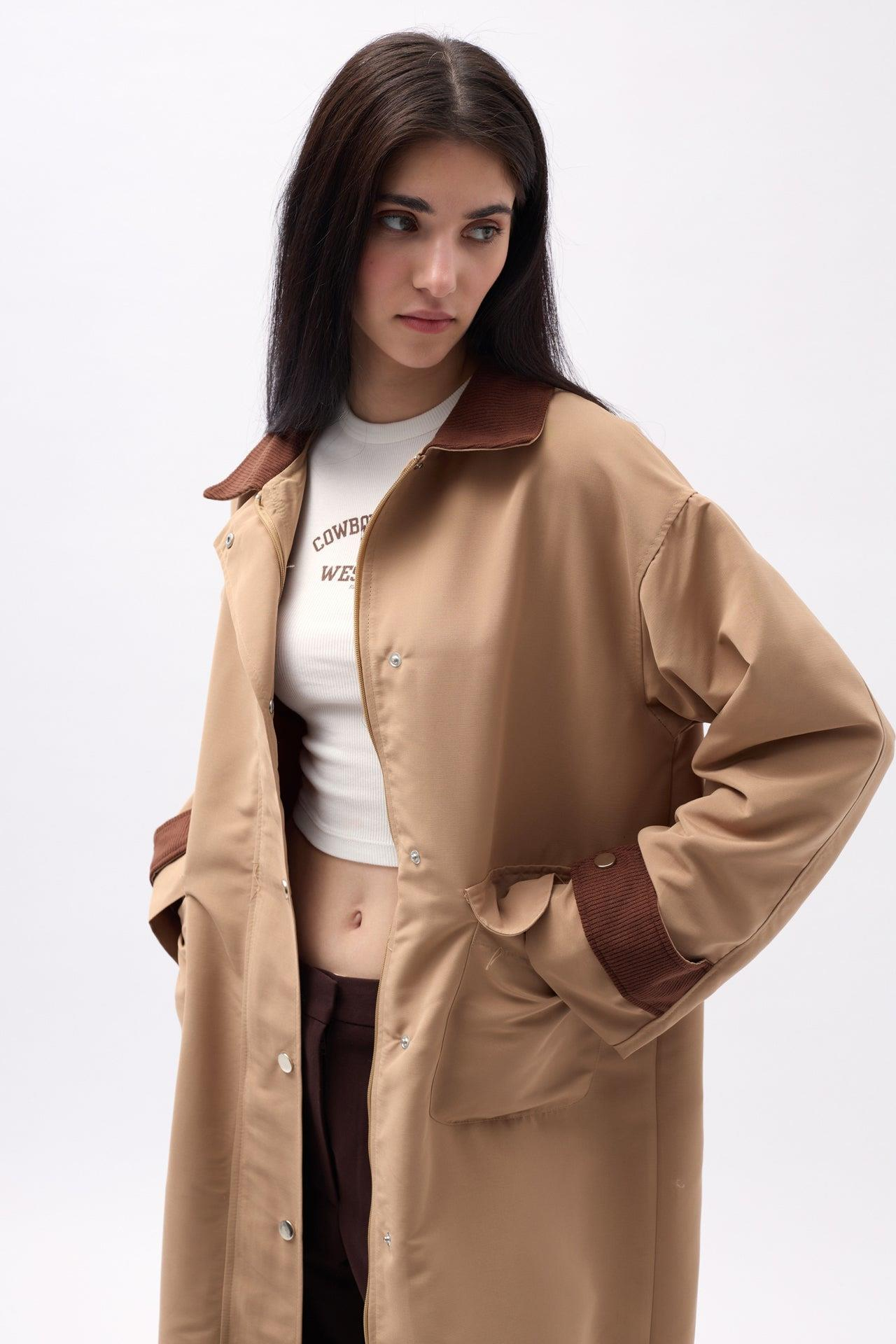 Yaka Detaylı Oversiz Kahverengi Trençkot ()