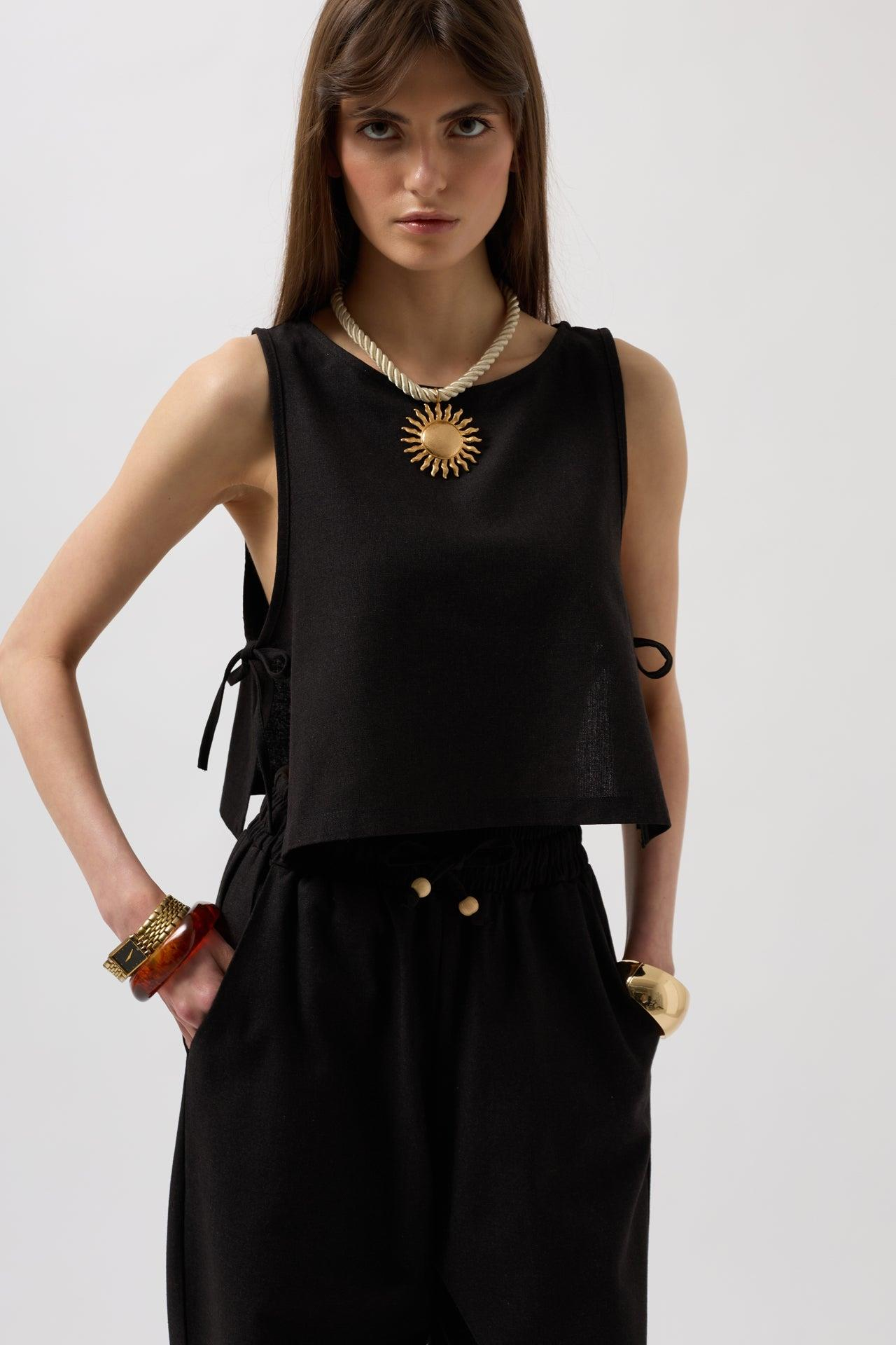 Yandan Bağlamalı Crop Siyah Bluz ()