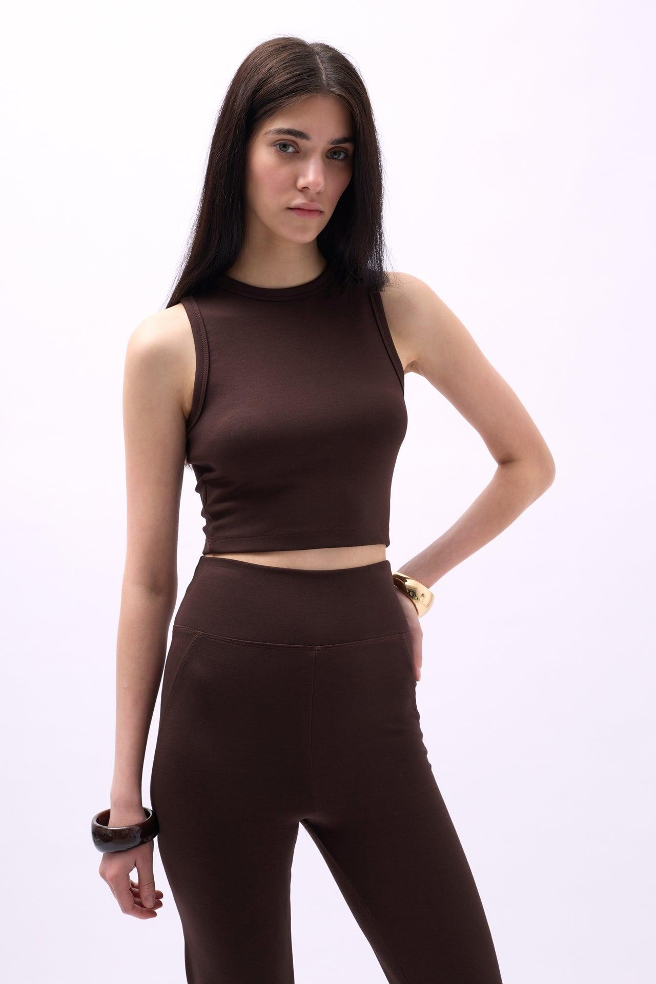 Yüzücü Yaka Crop Kahverengi Bluz ()